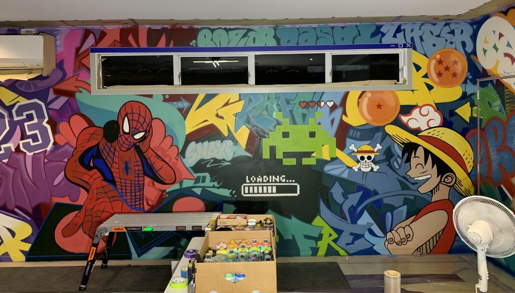 In May 2025, we invited Simon (Razor Taser Laser) to create a full-length aerosol-art mural as part of our refurbishment at Taiohi Tūrama – Rotorua Centre for Youth.